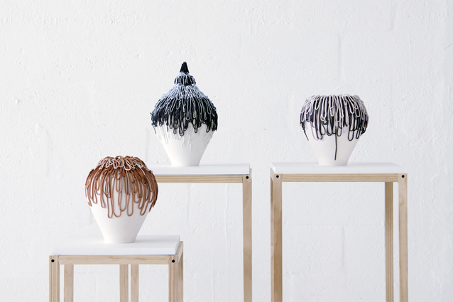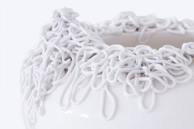As in most of her work, Marre Moerel has used her particular technique to obtain high-end conceptual pieces and with HILO, the designer has pushed the boundaries of ceramics to it;s extreme limits obtaining vases with high-end crafmanship, strong character and intuitive emotions making something which in theory it isn’t suppose to be possible. A collection of high and low vases where the more decorative and emotional aspect comes to light in the colored ones where the dyed ceramic thread has strong references to that textile and yarn, adding layers of warmth, intimacy, and delicacy.