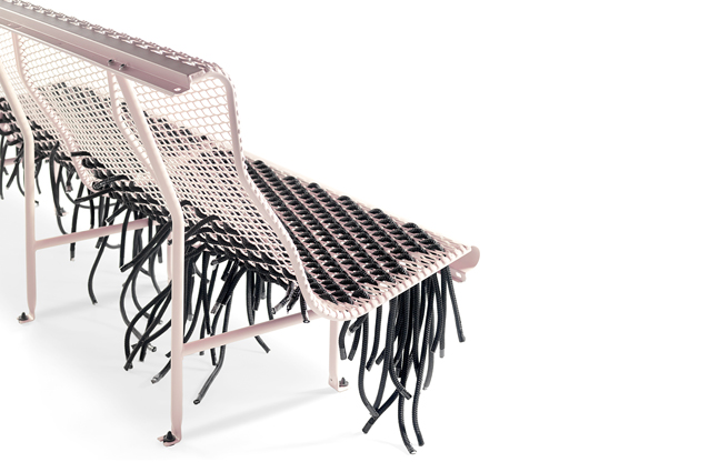Seat with steel tubular chassis of 0,7" x 0,07" diameter with a deployé steel sheet with black rope.