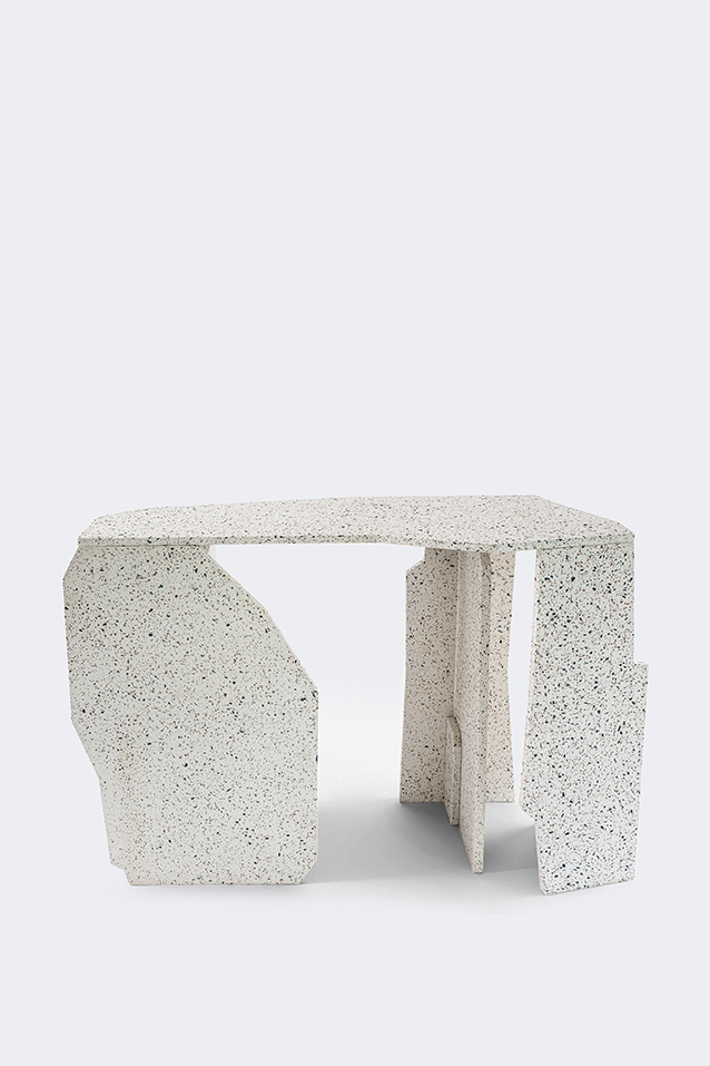 Sedimentary rocks are formed through the compression and consolidation of fragments or clasts of pre-existing minerals and stones, shaped and bound together over time by geological forces.Surprisingly, the CHROMA’s MERSUS process mirrors this natural formation, forging unexpected connections between nature and technology, past and present, the organic and the handmade.