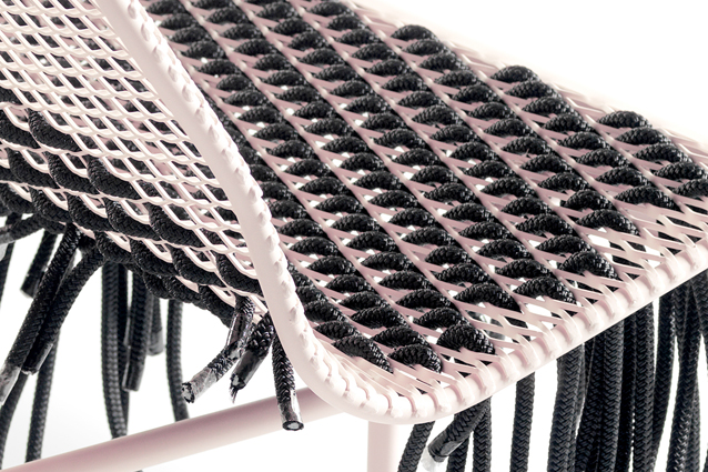 This Limited Edition of the Catalano bench comes in two pastel colors green and pink, with rope in black .